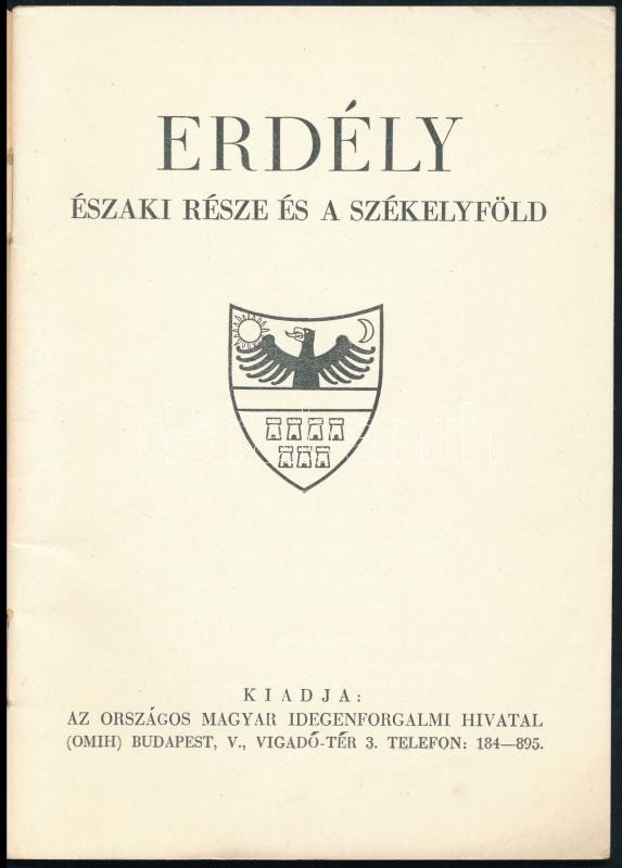 Leírás: Erdély északi része és a Székelyföld. Bp., é. n., Országos Magyar Idegenforgalmi Hivatal. Kissé kopott tűzött papírkötésben.