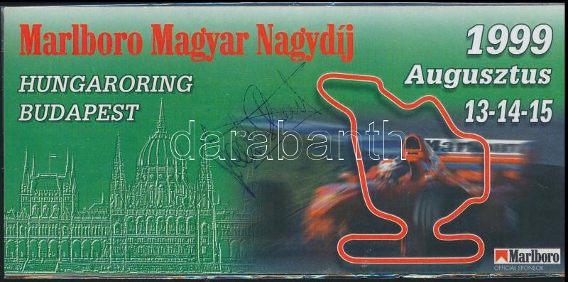 Leírás: 1999 Jackie Stewart (1939-) Forma-1-es világbajnok aláírása egy magyar nagydíj belépőjegyen.