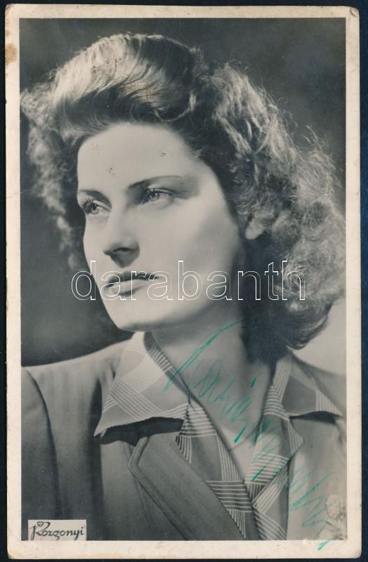 Leírás: Karády Katalin (1910-1990) színésznő aláírása az őt ábrázoló fotón