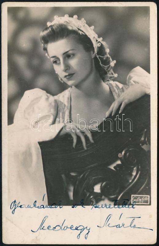 Leírás: Medvegy Márta (1922-1983) színésznő aláírása az őt ábrázoló fotón