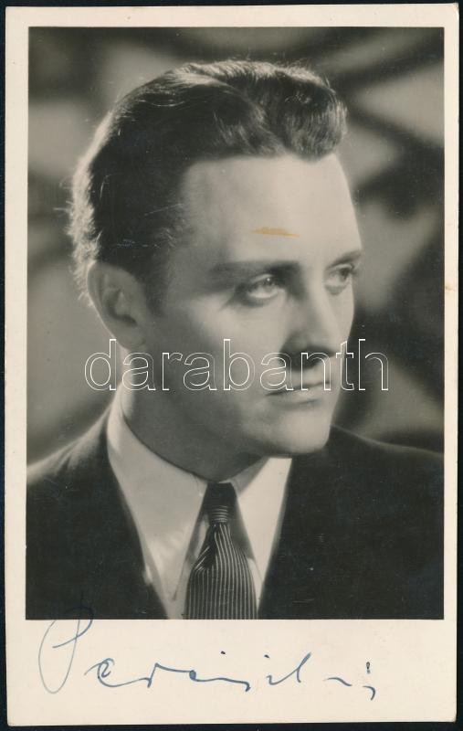 Leírás: Perényi László (1910-1993) színész aláírása az őt ábrázoló fotón