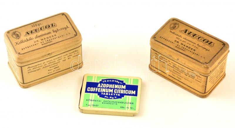 3 db fém orvosságos doboz (Alucol, Azophenum Coffeinum Citricum) https://www.darabanth.com/hu/360-Gyorsarveres/360.0/Mutargy-papirregiseg-egyeb/Bolhapiac~500011/3-db-fem-orvossagos-doboz-Alucol-Azophenum-Coffeinum-Citricum~II2071435
