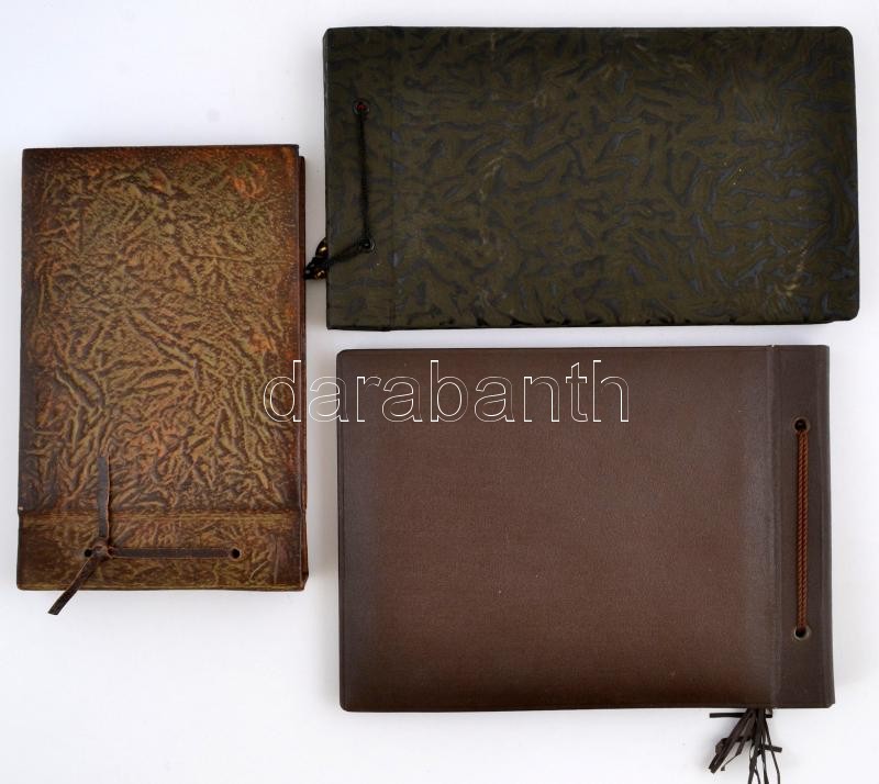 Leírás: 3 db régi fotóalbum, 17×30, 16×25 és 21×28 cm