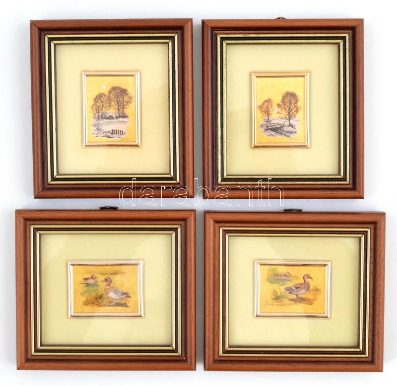 Leírás: 4 db kisméretű falikép, téli táj és kacsa motívummal, 10×9 cm