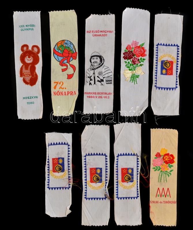 Leírás: 9 db textil könyvjelző (olimpia, űrrepülés, stb.)