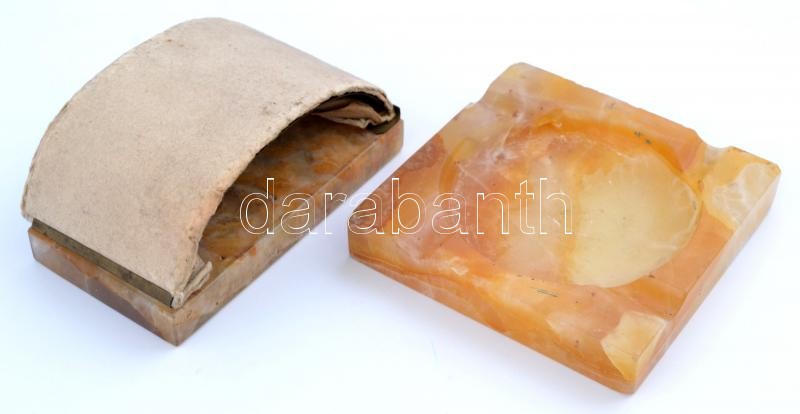 Leírás: Aragonit tapper és hamutálka, jelzett (Léva), apró hibákkal, 12×12 cm, 13×8 cm