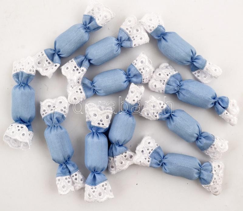 Csipkés, kék textil szaloncukor, 12 db, h: 12 cm https://www.darabanth.com/hu/360-Gyorsarveres/360.0/Mutargy-papirregiseg-egyeb/Bolhapiac~500011/Csipkes-kek-textil-szaloncukor-12-db-h-12-cm~II2070119