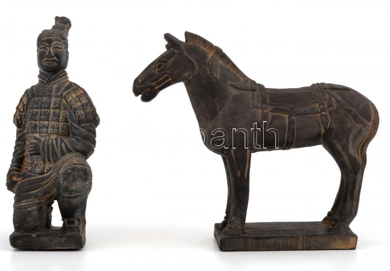 Leírás: Ló és kínai harcos, 2 db gipsz figura, m: 16 és 17 cm
