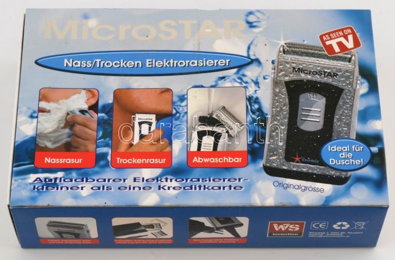 Microstar akkumulátoros mini villanyborotva, működik, eredeti dobozába... https://www.darabanth.com/hu/360-Gyorsarveres/360.0/Mutargy-papirregiseg-egyeb/Bolhapiac~500011/Microstar-akkumulatoros-mini-villanyborotva-mukodik-eredeti-dobozaban-7-5C3974-cm~II2071064