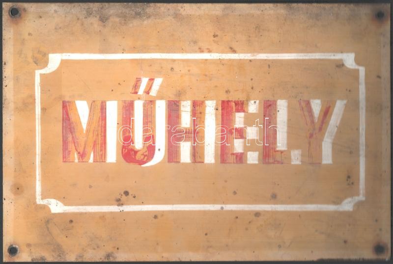 Régi festett "Műhely" feliratú tábla, 21×31 cm
