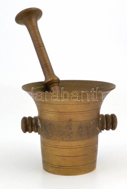 Réz mozsár törővel, m: 12 cm, h: 23 cm