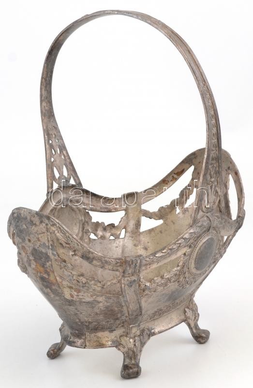 Leírás: Spiater kosár, üvegbetét és jelzés nélkül, m:28 cm, 25,5×15,5 cm