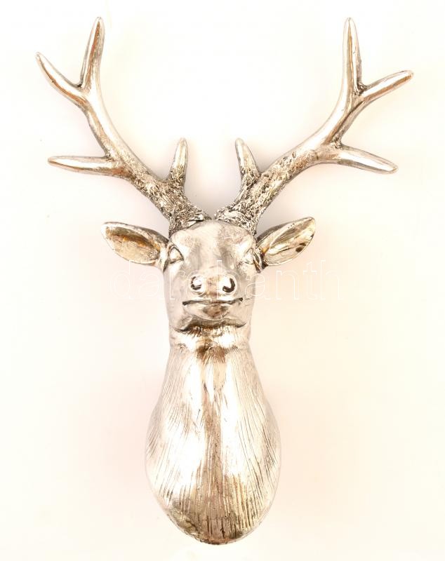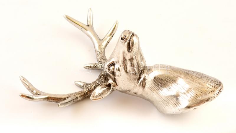 Leírás: Szarvasfej, ezüstszínű műanyag fali dísz, h: 19 cm