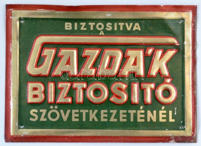 cca 1930 Gazdák biztosító fém tábla 18x13 cm