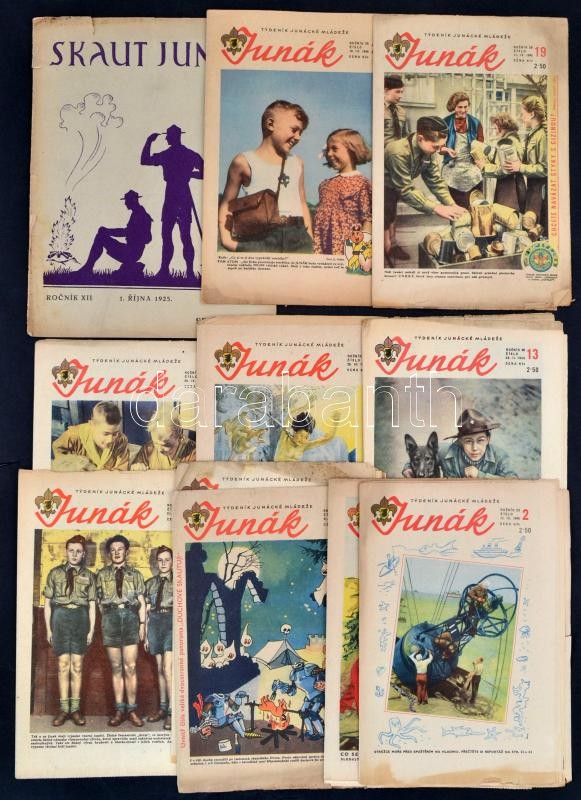 1946 Junák 11 száma. Változó állapotban, néhány borítón folt, szakadás, egy szám sérült, szakadt.