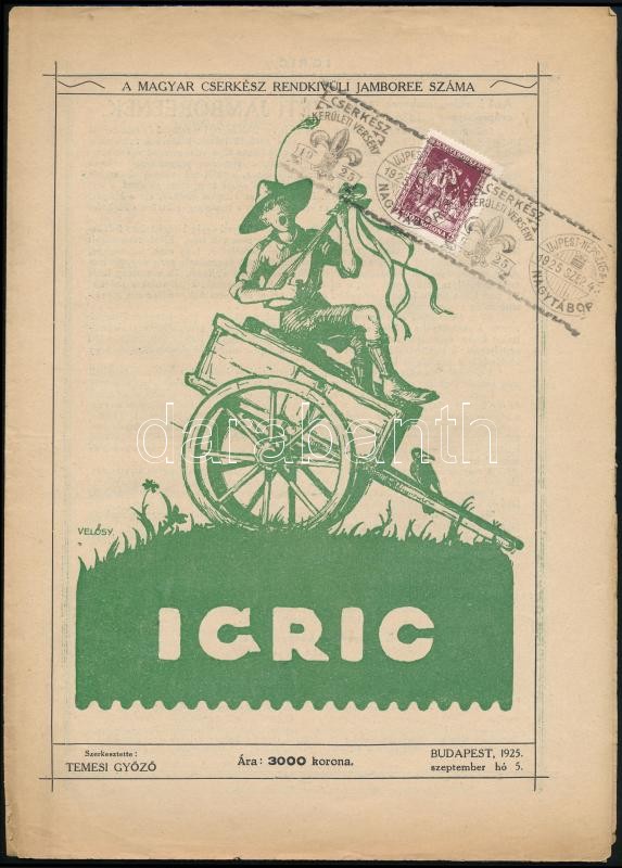 Leírás: 1933 Igric a Magyar Cserkész rendkívüli száma a Gödöllői Jamboree alkalmából alkalmi bélyegzéssel