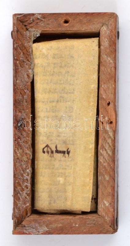 Leírás: cca 1800-1900 Mezuzatekercs, kézzel írt, pergamen, 6x8 cm/
