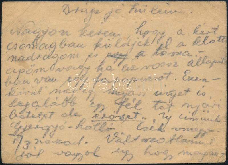 1942 Munkaszolgálatos tábori postai levelezőlapja https://www.darabanth.com/hu/360-Gyorsarveres/360.0/Mutargy-papirregiseg-egyeb/Militaria~500027/1942-Munkaszolgalatos-tabori-postai-levelezolapja~II2072819