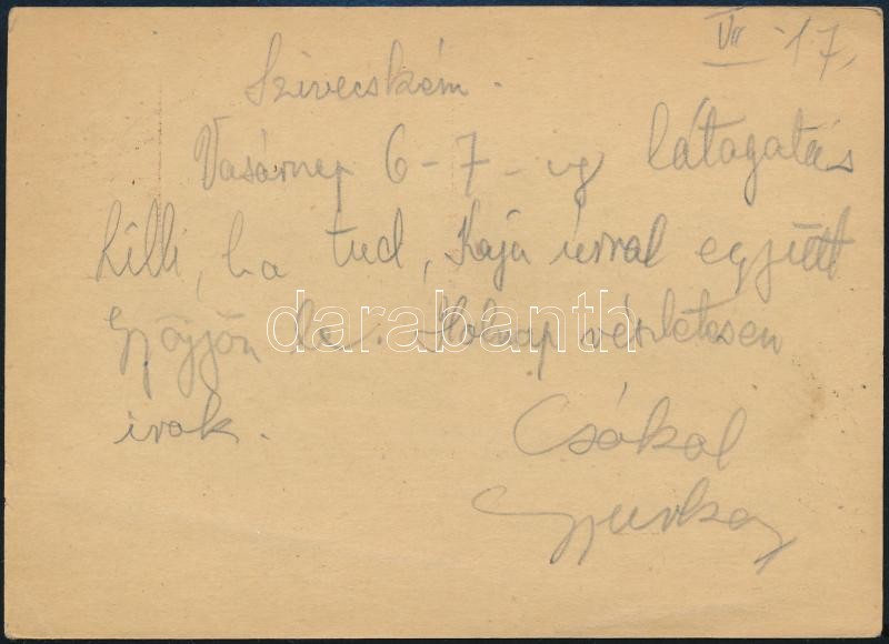 Leírás: 1942 Munkaszolgálatos tábori postai levelezőlapja