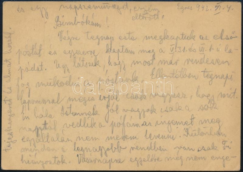 1942 Munkaszolgálatos tábori postai levelezőlapja https://www.darabanth.com/hu/360-Gyorsarveres/360.0/Mutargy-papirregiseg-egyeb/Militaria~500027/1942-Munkaszolgalatos-tabori-postai-levelezolapja~II2072836