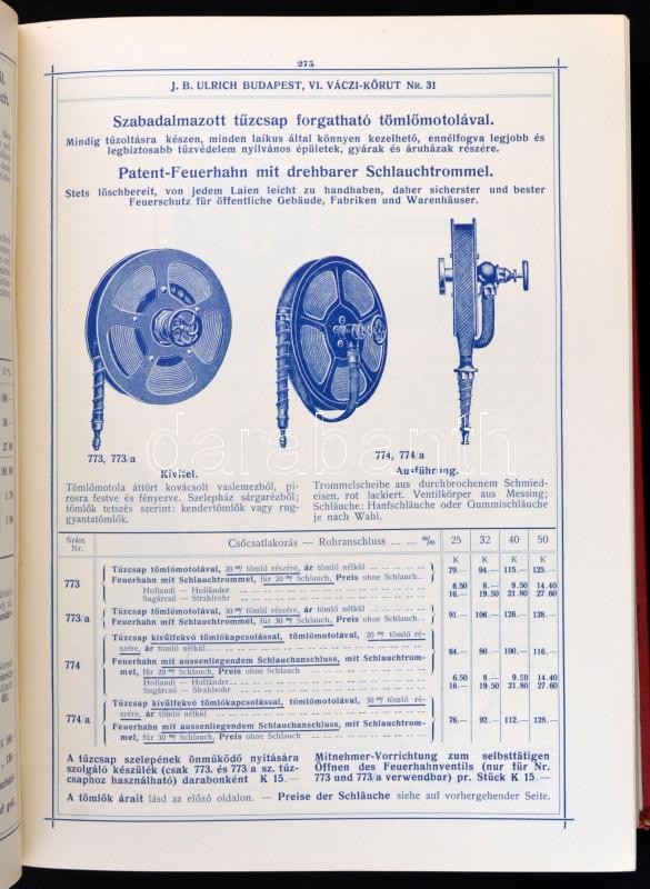 Leírás: 1914 Bp., Ulrich B. J. mindennemű csövek, légszesz-, víz és gőzvezetéki fölszerelések, szerszámok és műszaki cikkek raktára árjegyzéke, 1360 p