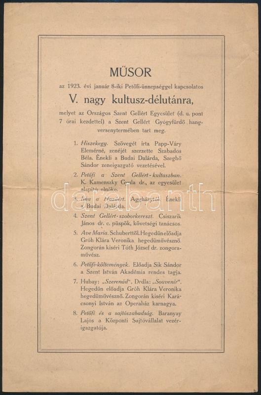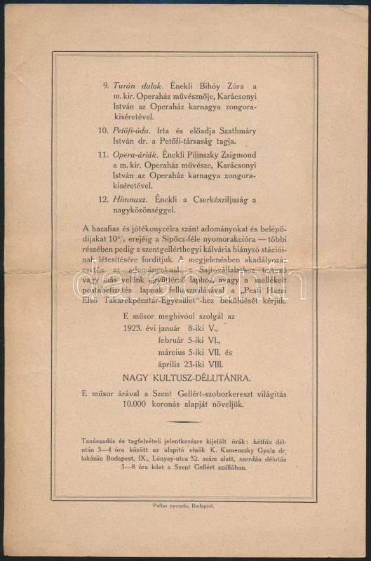 Leírás: 1923 Petőfi ünnepség kultusz-délután műsorprogram