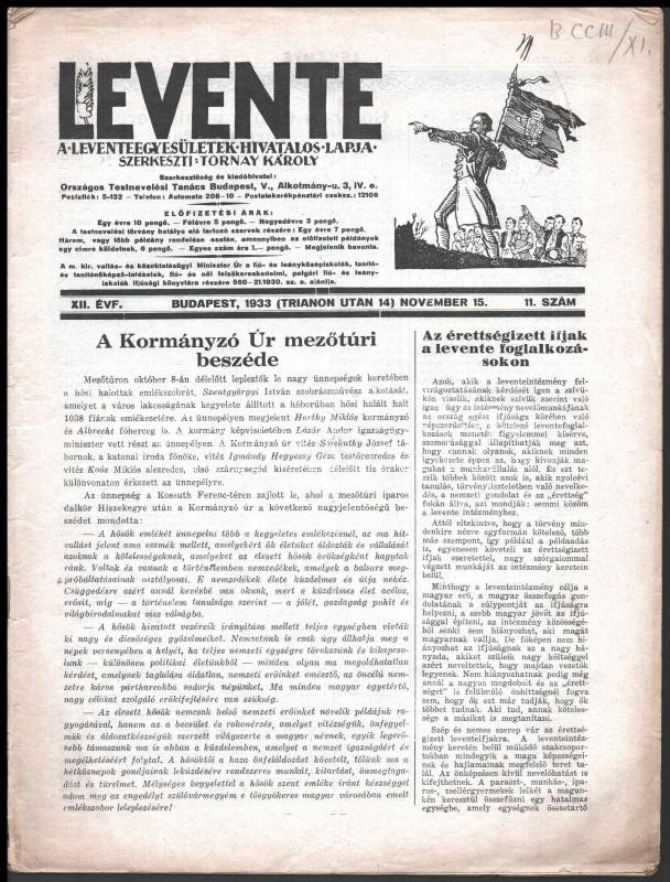 Leírás: 1929-1933 Levente. A Levente Egyesületek hivatalos lapja 2 száma, VIII. évf. 5. sz., XII. évf. 11. sz.