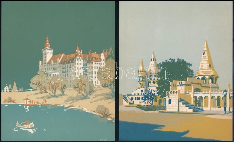 Leírás: 5 db Magyar várost, helyszínt, művészek képeit (Török Endre, Csanády András, Zsille Győző) nyomat: Vajdahunyadvára, Kilátás a Gellérthegyről, Halászbástya, Dunakanyar, Lillafüred, 17x14 cm