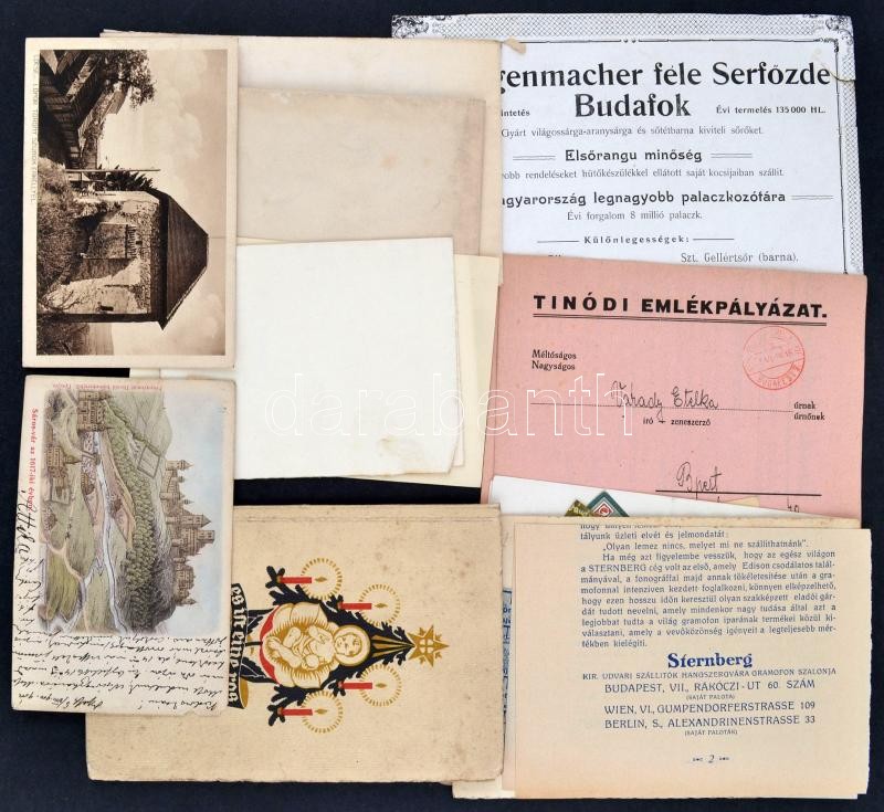 Leírás: Kis vegyes papírrégiség tétel: képeslapok, nyomtatványok, meghívók