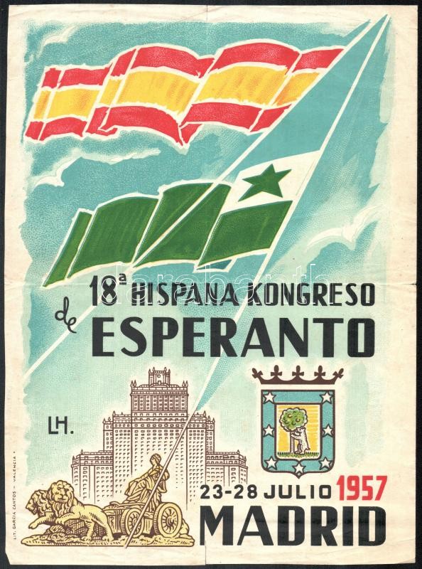 1957 Eszperantó kongresszus, plakát, szakadással, 29,5×22 cm https://www.darabanth.com/hu/360-Gyorsarveres/360.0/Mutargy-papirregiseg-egyeb/Plakat~500031/1957-Eszperanto-kongresszus-plakat-szakadassal-29-5C39722-cm~II2032478