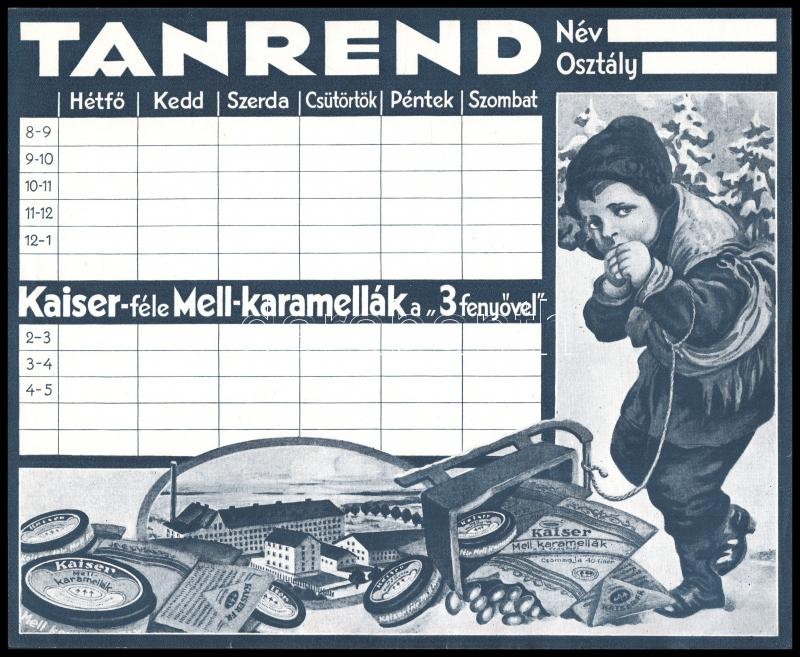 Leírás: cca 1930 Kaiser féle mell.karamellák reklámos tanrend 26x22 cm