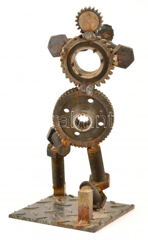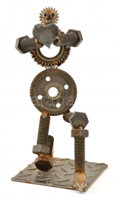 Leírás: Jelzés nélkül: Udvarló gépember. Hegesztett vas, talpazaton, m: 35 cm