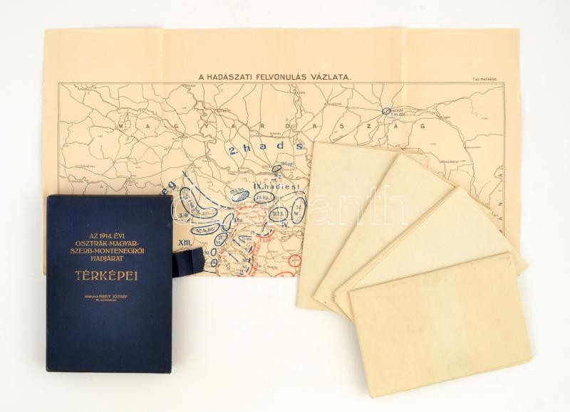 Leírás: Breit József, doberdói: Az 1914. évi osztrák-magyar-szerb-montenegrói hadjárat.térképei. A könyv térképmellékletei aranyozott egészvászon mappában.