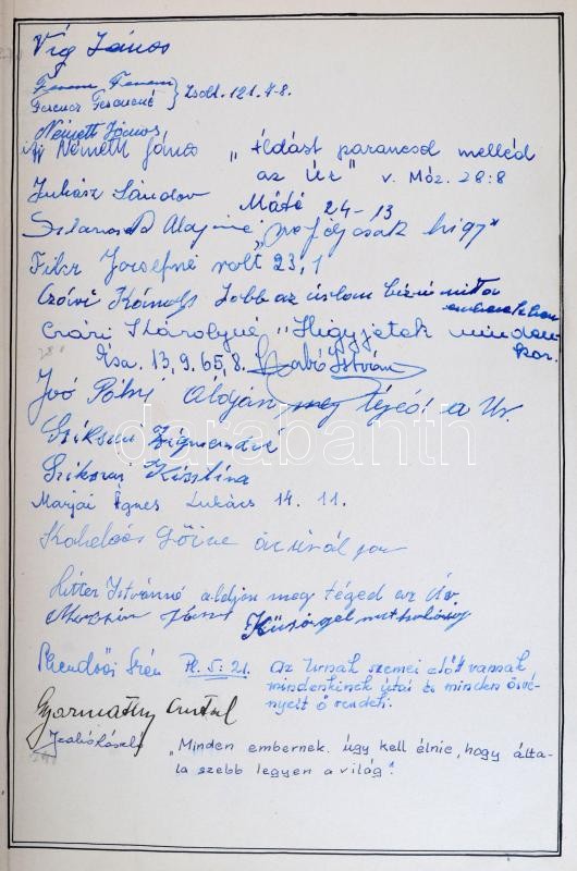 1935-1975 Józsefvárosi református lelkész vendégkönyve, aláírásokkal https://www.darabanth.com/hu/360-Gyorsarveres/360.0/Mutargy-papirregiseg-egyeb/Tortenelmi-dokumentumok-keziratok-erdekessegek~500018/1935-1975-Jozsefvarosi-reformatus-lelkesz-vendegkonyve-alairasokkal~II2076215