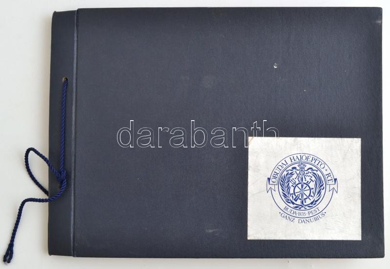 cca 1990-1994 Ganz Danubius Óbudai Hajóépítő Rt. az 1995-re tervezett Világkiállításra összeállított portfólió-anyaga, 5 oldalas szöveggel, 20 képpel. Haránt alakú zsinórfűzött mappában, hullámos lapokkal, a 16. képtáblán sérülés nyommal, és az előző tábla hátoldalán folttal, 1-5 p.+20 t.