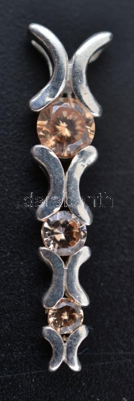 Leírás: Ezüst (Ag), bézs színű cirkon kövekkel díszített medál, jelzés nélkül, h: 2 cm, bruttó: 1,1 gr.