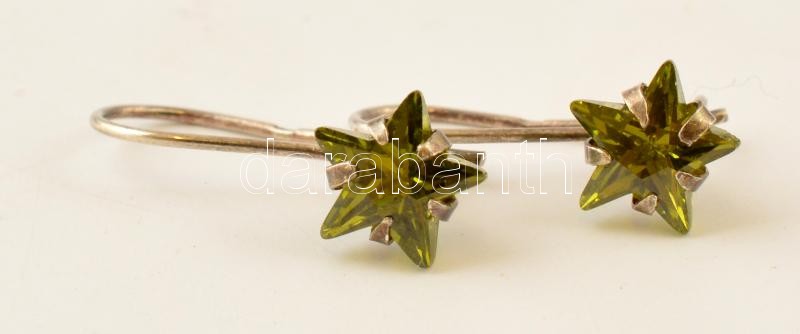 Leírás: Ezüst(Ag) csillagos fülbevalópár, zöld kővel, jelzett, bruttó: 1,8 g