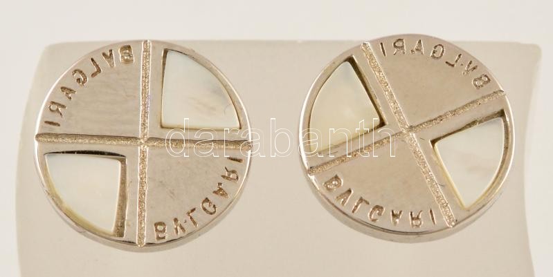 Leírás: Ezüst(Ag) fülbevalópár, gyöngyház díszítéssel, Bulgari jelzéssel, d: 1,2 cm, bruttó: 2,3 g