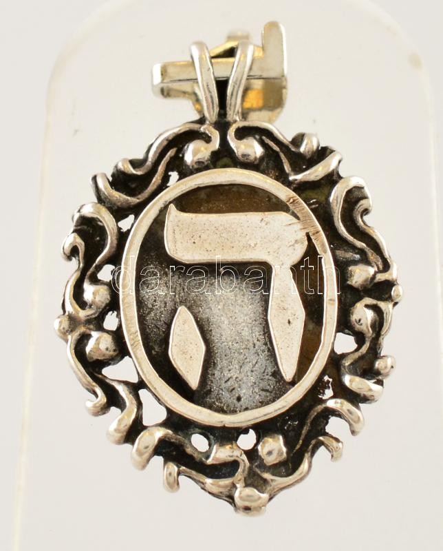 Leírás: Ezüst(Ag) héber feliratos függő, jelzés nélkül, 2,5×1,8 cm, nettó: 3,5 g