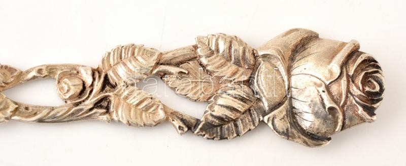Leírás: Ezüst(Ag) rózsás villa, 3 db, jelzett, h: 13; 14,5 és 19 cm, nettó: 59,5 g