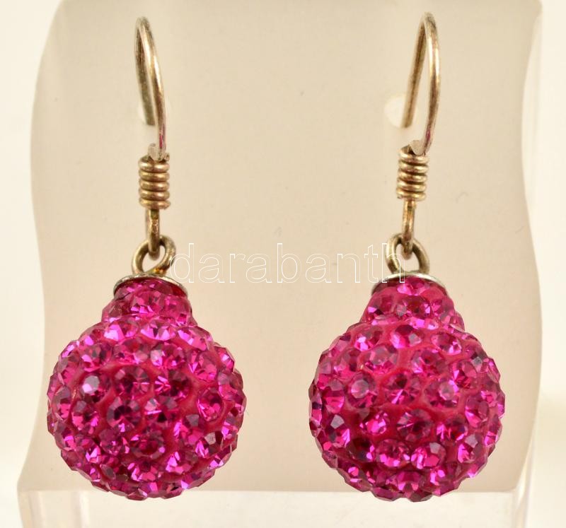 Leírás: Magenta színű, apró kövekkel díszített fülbevalópár, ezüst(Ag) szerelékkel, jelzett, h: 1 cm