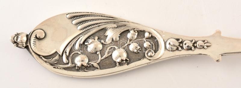 Leírás: cca 1910 Ezüst(Ag) szecessziós habos kanál, jelzett, h: 19,5 cm, nettó: 49,5 g