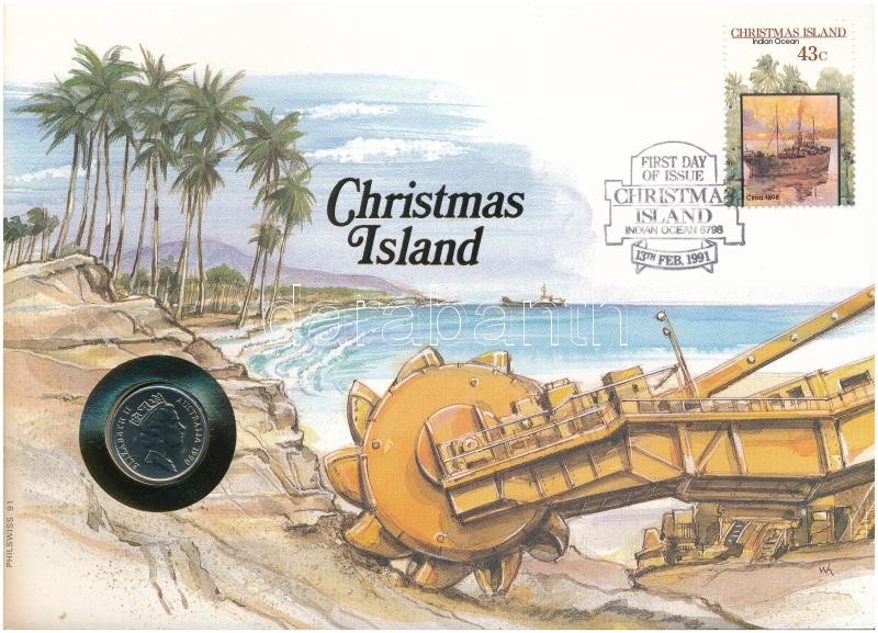 Ausztrália / Karácsony-sziget 1990. 5c felbélyegzett borítékban, bélye...