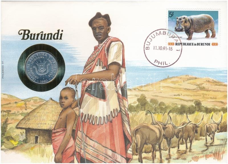 Burundi 1980. 5 Francs in envelope with stamp and cancellation, with German description C:UNC