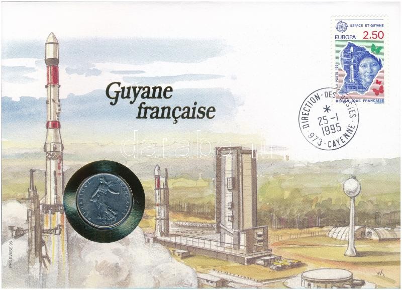 Franciaország / Francia Guyana 1991. 1Fr felbélyegzett borítékban, bélyegzéssel, német nyelvű leírással T:1
