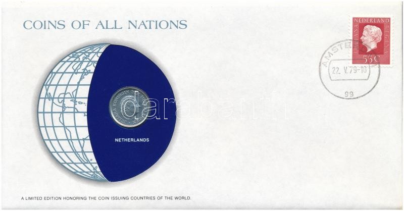 Hollandia 1979. 25c "Nemzetek pénzérméi" felbélyegzett borítékban, bélyegzéssel T:1 Netherlands 1979. 25 Cents "Coins of all Nations" in envelope with stamp and stamping C:UNC