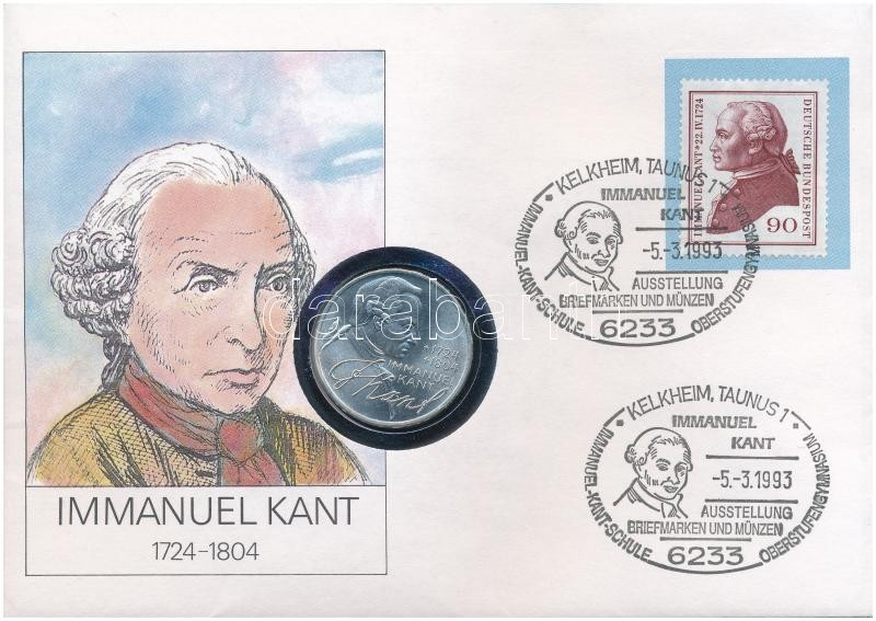 NSZK 1974D 5M Ag "Immanuel Kant" felbélyegzett borítékban, bélyegzéssel T:1- patina