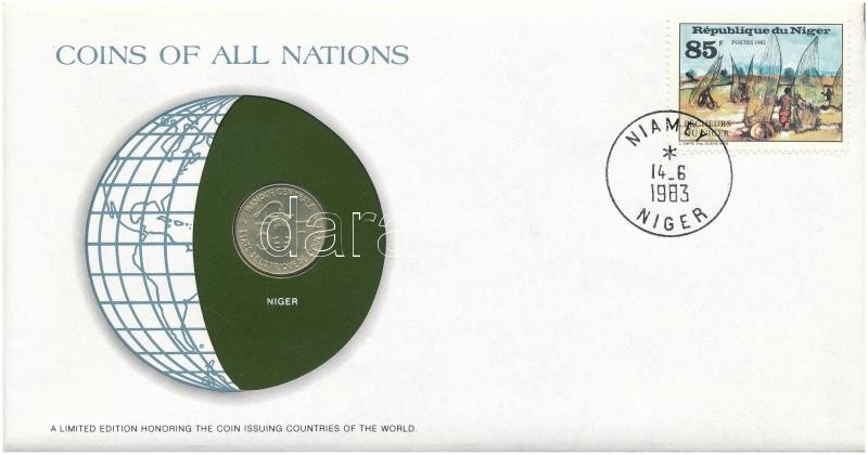 Nigéria 1982. 5Fr "Nemzetek pénzérméi" felbélyegzett borítékban, bélyegzéssel T:1- Nigeria 1982. 5 Francs "Coins of all Nations" in envelope with stamp and stamping C:AU