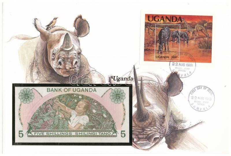 Ug... https://www.darabanth.com/hu/360-Gyorsarveres/360.0/Numizmatika/Ermes-es-bankjegyes-boritekok~2000004/Uganda-1982-5Sh-boritekban-alkalmi-belyeggel-es-belyegzessel-TI-Uganda-1982-5-Schilling-i~II2073865
