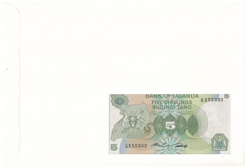 Uganda 1982. 5 Schilling in envelope with stamps and cancellations C:UNC